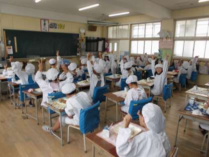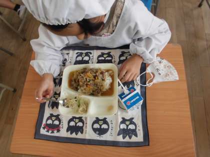 今日の給食は、牛丼でした。美味しくいただきました。「ごちそうさまでした。」