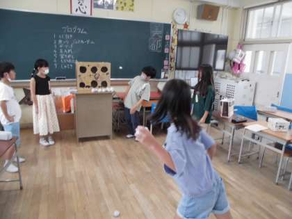ボーリング、射的、宝探しなどグループで工夫を凝らしてお楽しみ会を盛り上げていました。