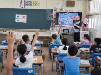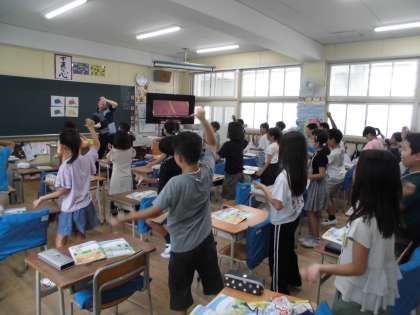 カーズの音楽に合わせてジェスチャーを交えて英語の歌を歌いました。