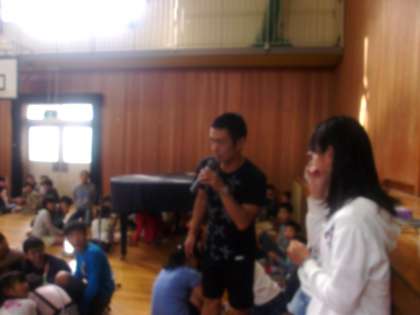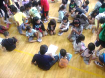 今週のフレンド集会は、集会委員によるゲーム集会で「食欲の秋クイズ」でした。秋の食べ物にちなんだクイズをフレンド班のメンバーと相談して解答用紙に書きます。中には、学年指定のクイズもあってみんなはりきって答えていました。最終問題は、M先生の好きな食べ物の問題で、答えを実際にインタビューする様子も見られ、とても盛り上がりました。