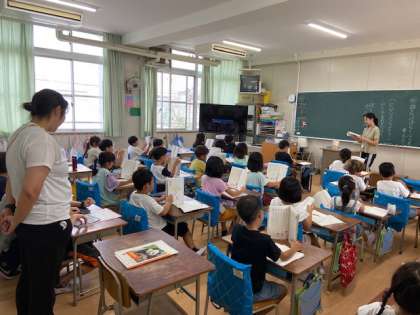 1組 タブレットで写真を撮って先生PCに送る練習をしたよ