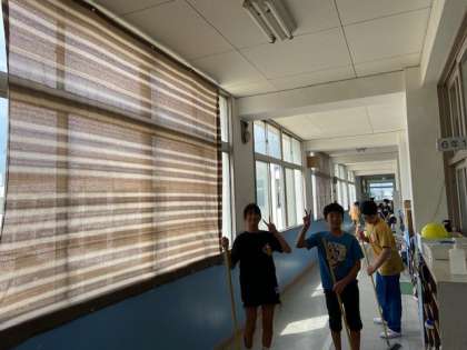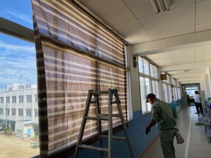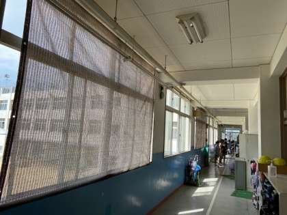 管理作業員さんがすだれをつけてくれました。日差しが和らぎました。