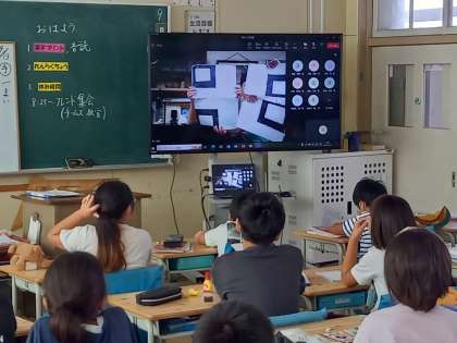 今回はチームズを活用したフレンド集会です。集会委員会の児童が漢字や仮名のクイズを出題してくれました。学級ではどのような字になっているのか考えていました。