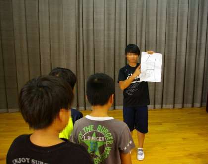 さあ2枚目は、難しいですね。注意されているみたいですが、答えはなんと「ふざけている子が、○○先生に叱られているところ」だそうです。子どもたちはよく先生の様子を見ているようです。