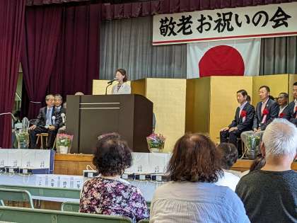 暑い中でしたが、たくさんの方が参加されていました。学校の代表として、6年生の2人がお祝いの言葉を述べました。堂々としっかり伝えることができました。敬老の日、ほんとうにおめでとうございます。ご準備された皆様にも、厚く御礼申しあげます。