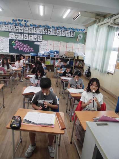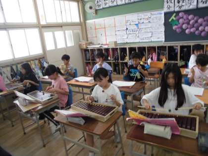 音楽の時間に「ザ・ロンゲストデイマーチ」の合奏の練習をしました。