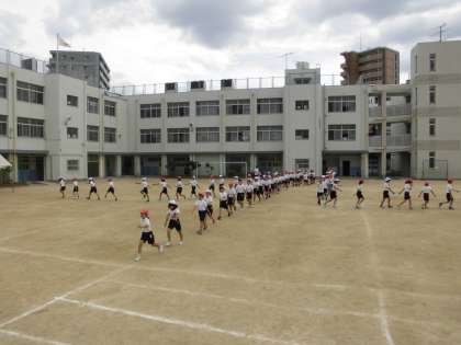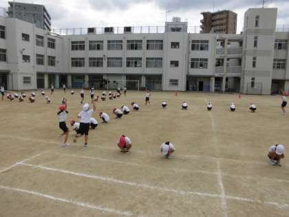 今日は曇っていましたが、運動場で運動会の練習を頑張りました。
