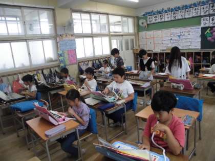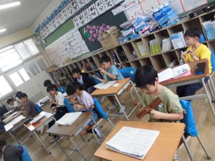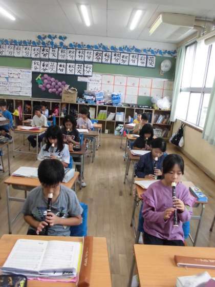 合奏のパート練習をしました。いろいろな楽器を使ってみんなで合奏に取り組んでいます。