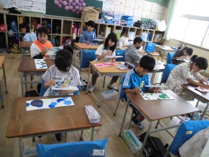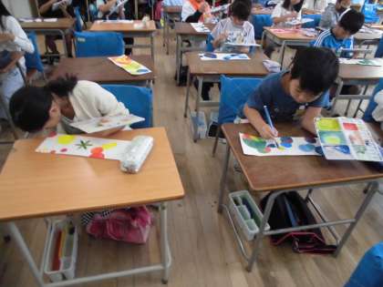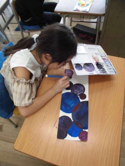 算数科で習ったコンパスを使って図工の時間にデザインしました。