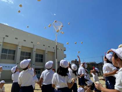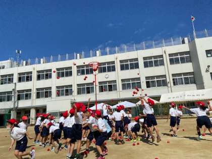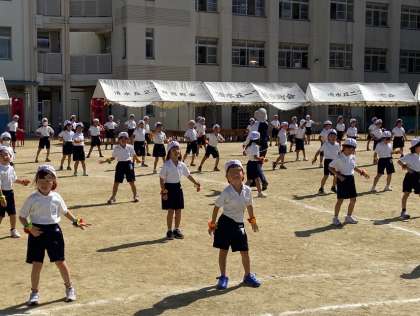 初めて手首に可愛い花をつけてダンス練習をしました。玉入れも頑張りました。
