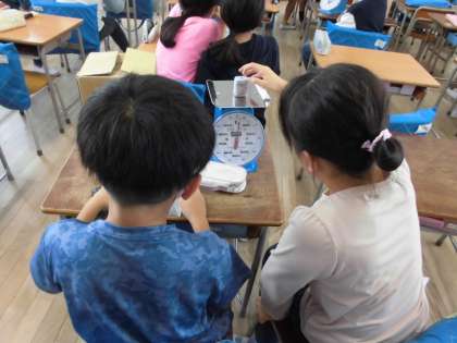 明日のカルビー出前授業に備えて秤をの使い方を練習しました。