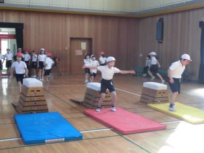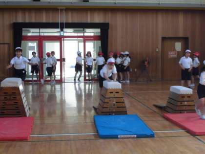 ひさしぶりに体育館で体育の時間に跳び箱をしました。