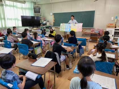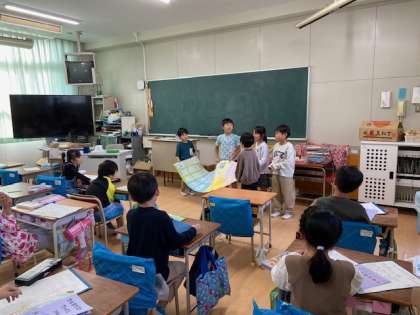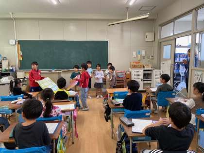 先日2年生から「おもちゃランド」の招待を受け楽しく遊ばせてもらったので、1年生がお礼の手紙を書いて2年生に届けました。