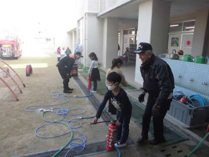 消防署のお仕事や火事が起こった時にどうするべきかを教えていただきました。その後、いろいろと体験させていただきました。