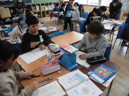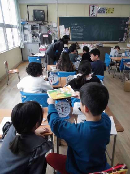 算数科で重さの学習に入りました。身近にあるものの重さを測りました。