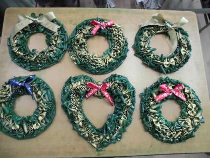 参観日に取り組んだマカロニで作ったクリスマスリースが出来上がりました。