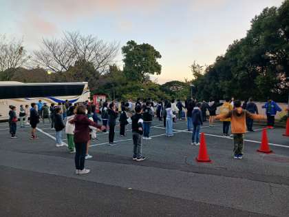 集合時間に遅れることなく集合できました。ラジオ体操で体を目覚めました。