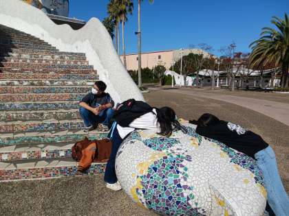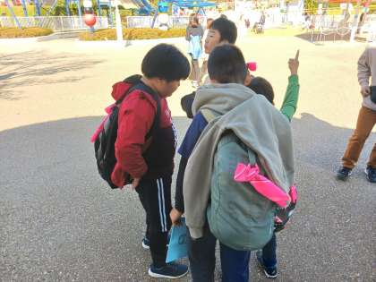 班行動でアトラクションに乗車しています。疲れた班もあるようです。