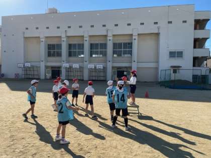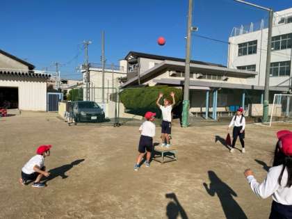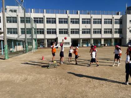 体育ではポートボールをしています。最初はパス回しや、シュートに苦戦していましたが、どのチームもだんだん上手くなってきました。