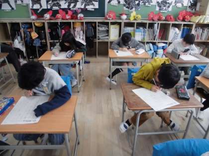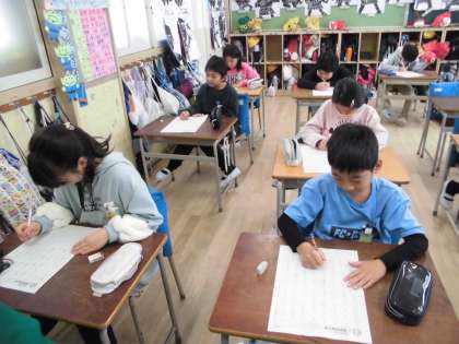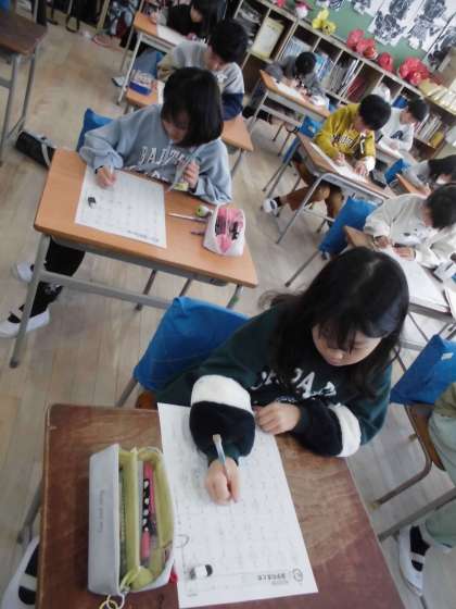 二学期もそろそろ終わりに近づいてきました。漢字の総まとめテストに取り組んでいます。