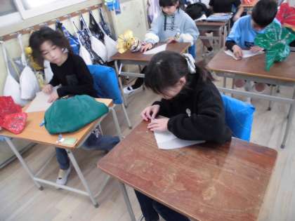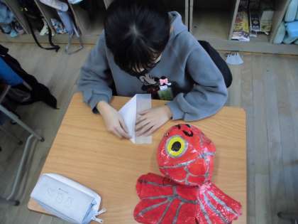 作品展に展示する立体作品の「金魚ねぶた」の製作に取り組んでいます。