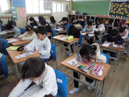 国語科で俳句の学習をしています。お気に入りの俳句を短冊に書きました。