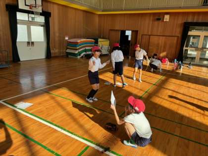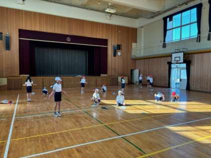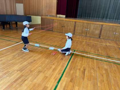 今日は3学期に入って初めての体育で、なわとびカードを使って色々なとびかたを確認しました。その後はペアになってチェックしあい、とべた所はカードに色を塗りました。