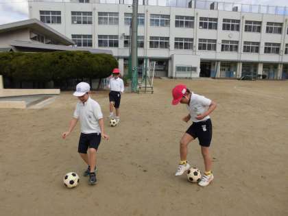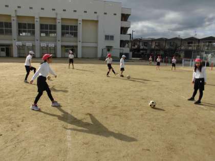 今日は良いお天気に恵まれて、運動場でサッカーをしました。