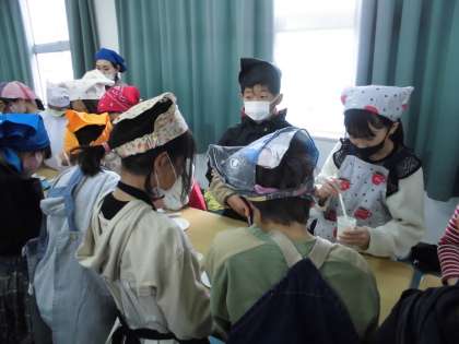 生クリームをグループで交代で振って、バターを作りました。出来上がったら、試食もしました。