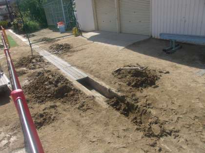今日は朝から管理作業員さんが、運動場の体育倉庫前の側溝に溜まっていた土をきれいにしてくださっています。応援にかけつける児童もいて管理作業員さんも喜んでおられました。おかげさまで、学校がきれいになりありがたいです。
