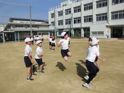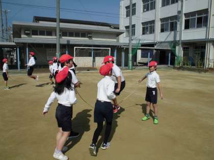 一年間大繩の練習をしてきました。クラス全員が八の字を跳べます。