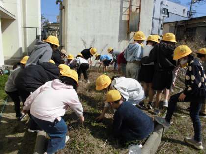 来年に向けて学習園の草抜きをしました。草ぼうぼうがとてもきれいになりました。