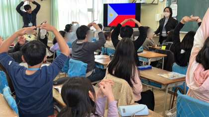 C-NETも入っての英語の学習です。C-NETとして来ていただいている先生の母国についてクイズ形式で紹介していてとても盛り上がっていました。