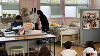 最初に保健指導で筋力をつけることの大切さを学習したり、保健室でのルールやマナーなどを確認したりした後、身長と体重を計りました。