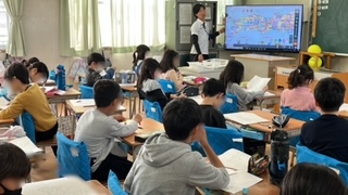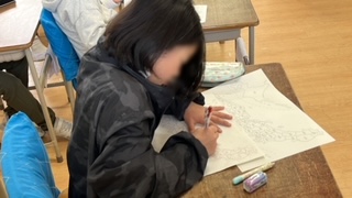 社会科の学習です。日本の都道府県の学習です。白地図を使って県や府などの位置を確かめます。自分が調べて白地図に書いた位置を正しい位置が書いた地図で確かめていました。