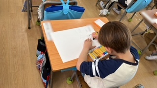中段は2組、自分の名前のひらがなを丁寧になぞって書いていました。何色のパスで書こうか悩んでいる子もいました。