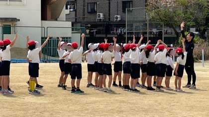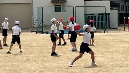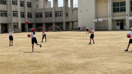 体育の学習です。ボールのパス練習をしていました。グループで声をかけ合いながら活動していました。先生から、これからチームを編成して練習したりゲームをしたりする活動が多くなるので小集団で声を掛け合いながらの活動は大切だよとの話がありました。