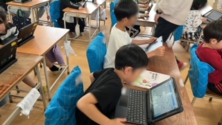 ICT支援員さんにタブレット端末の操作を指導いただいていました。上手く操作出来ず戸惑っている子、端末が反応せず復旧出来ず困っている子など、上手くいかない子一人ひとりに丁寧に接し学習を進めていました。これからもタブレット端末を活用した活動を進めていくためにも、子どもたちも教職員もどんどん使って習熟していきたいです。