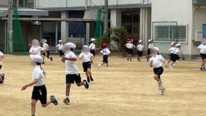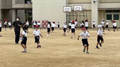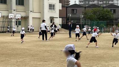 合同体育の時間です。全員で鬼ごっこをしていました。運動場を目一杯使って走り回っていました!