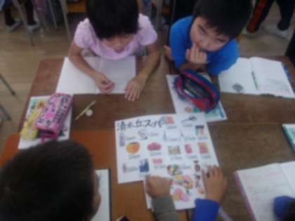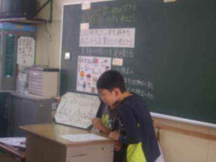 今日は4年2組で算数の研究授業がありました。「がい数の表し方」の学習で、(1000円で買い物ができるように好きな商品を3つ選ぼう)という内容でした。子どもたちはグループに分かれてどのように見積もりをたてれば計算しやすいか話し合いました。そして、見積もりをたてる時に十の位で四捨五入したり一の位で四捨五入をしたりして計算すれば答えを求めやすいということに気づきました。