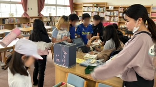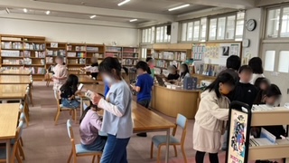 木曜日のお昼休みは図書館開放をしています。図書委員会の子どもたちで運営しており、本の貸し借りの登録もしています。
