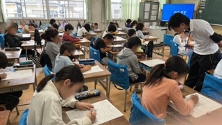 算数のテストに取り組んでいました。子どもたちは真剣な表情で取り組んでいました(当然でしょうけど)!