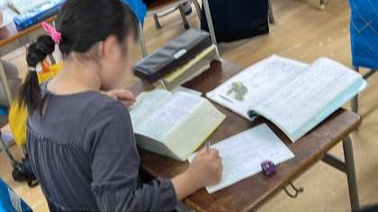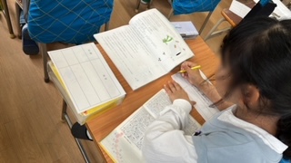 国語の学習です。国語辞典を使って語句の意味調べをしていました。自分のわからない語句や先生から提示された語句などを、辞書のページを何回もめくりながら探していました。
