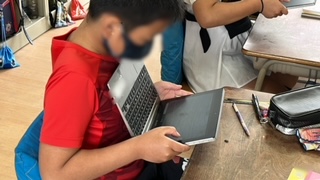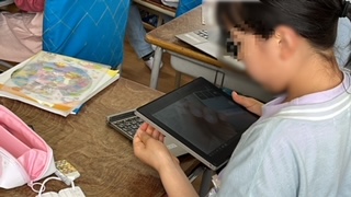 理科の学習です。タブレットの発表ノート機能を使って観察ノートを作っていました。まずは、タネの写真を撮っていました。