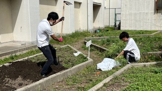 教材になる植物を植えるために学習園を整備します。夏に花が咲いたり秋に収穫できたりするものを植えて、子どもたちと大切に育てていきます。