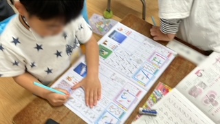 国語の学習です。ひらがなノートを使ってのひらがな学習です。丁寧に練習して、出来たら先生にみてもらいます。