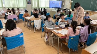道徳の学習です。この単元は、1組の学級担任が2組を、2組の学級担任が3組を、3組の学級担任が1組を、それぞれ指導しました。