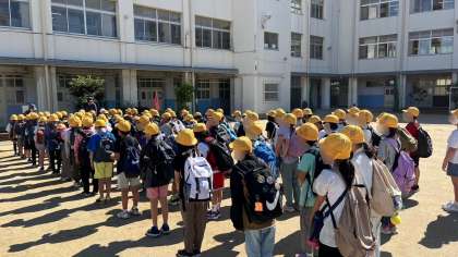 4年生が大仙公園に遠足に出かけます。いい天気で良かったです。