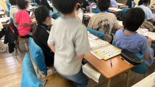 C-NETとの英語の時間です。12ヶ月の英語名称を覚えようと練習していました。C-NETが12ヶ月をそれぞれ英語で言い、自分の生まれた月が言われたら、その時に立ちます。