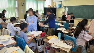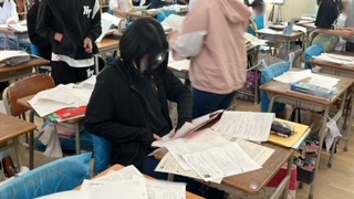 今まで取り組んだ学習プリントを整理していました。たくさんありますが、さすが6年生、手際よくファイリングしていました。